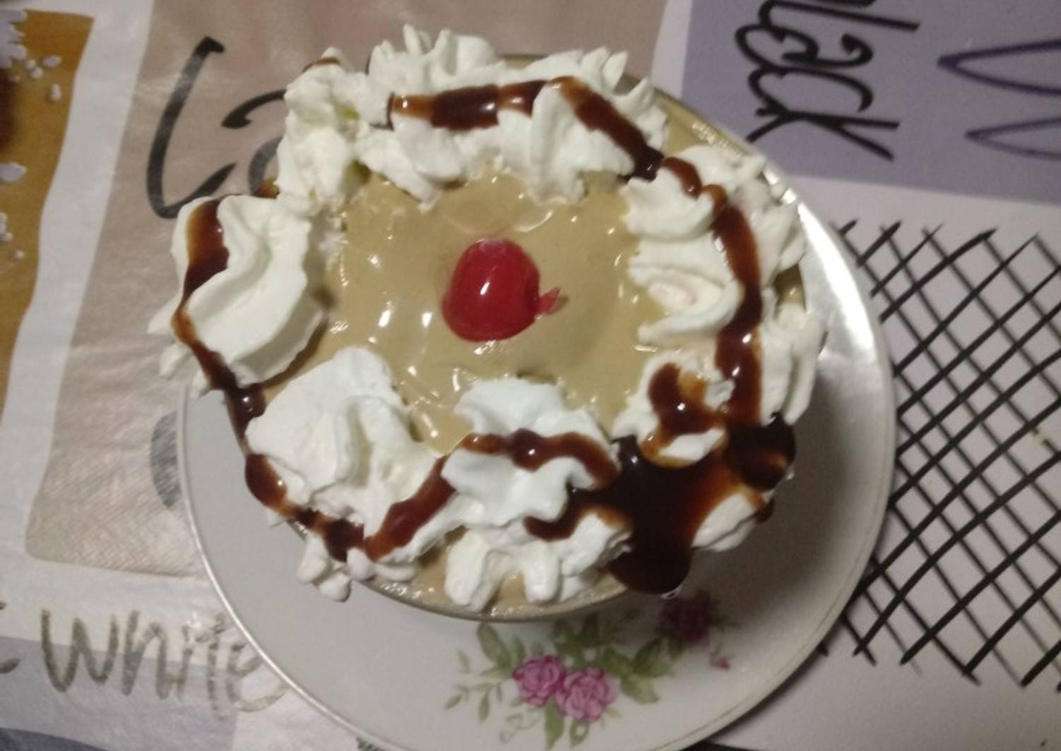 Sigue con la nata que tienes en la manga pastelera. Endulzar el café, agregar unas gotas de whisky y repartirlo en las copas de servir. A perfect way to end up a meal.